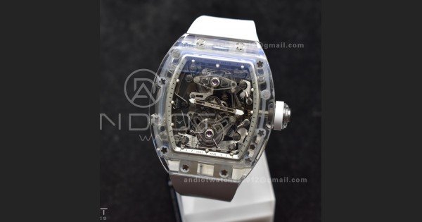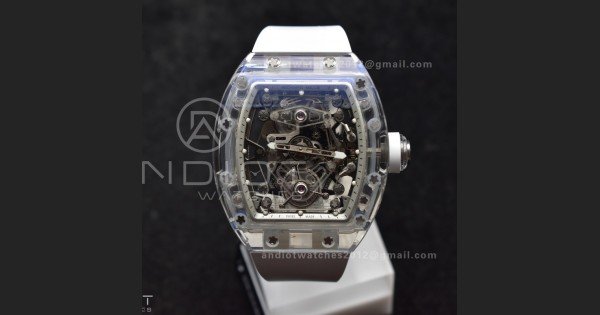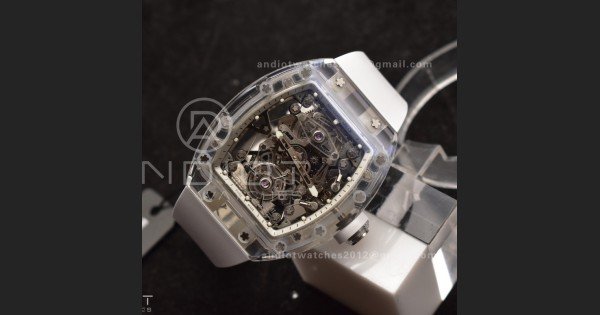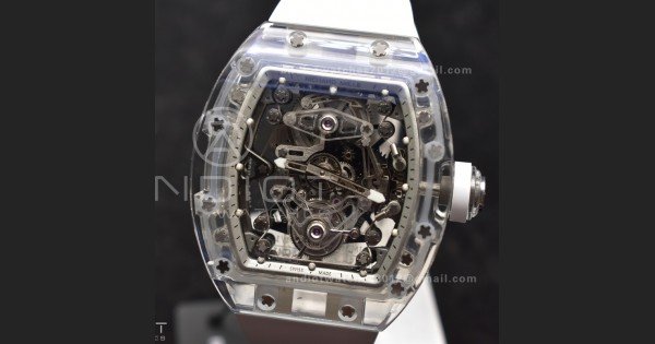 RM56-02 Transparent Tourbillon RMF Best Edition Skeleton White Dial on White Rubber Strap