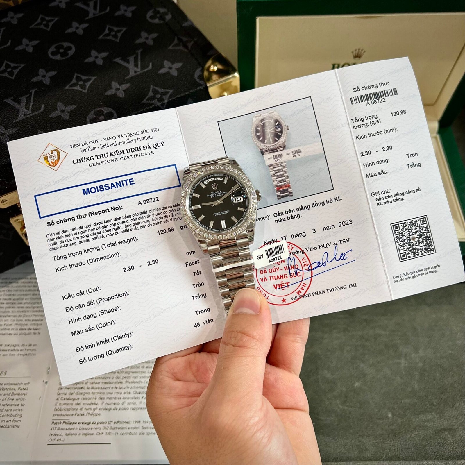 Rolex Day-Date Replica Watch Black Dial Custom Moissanite Diamonds 40mm – Đồng Hồ Replica 1:1