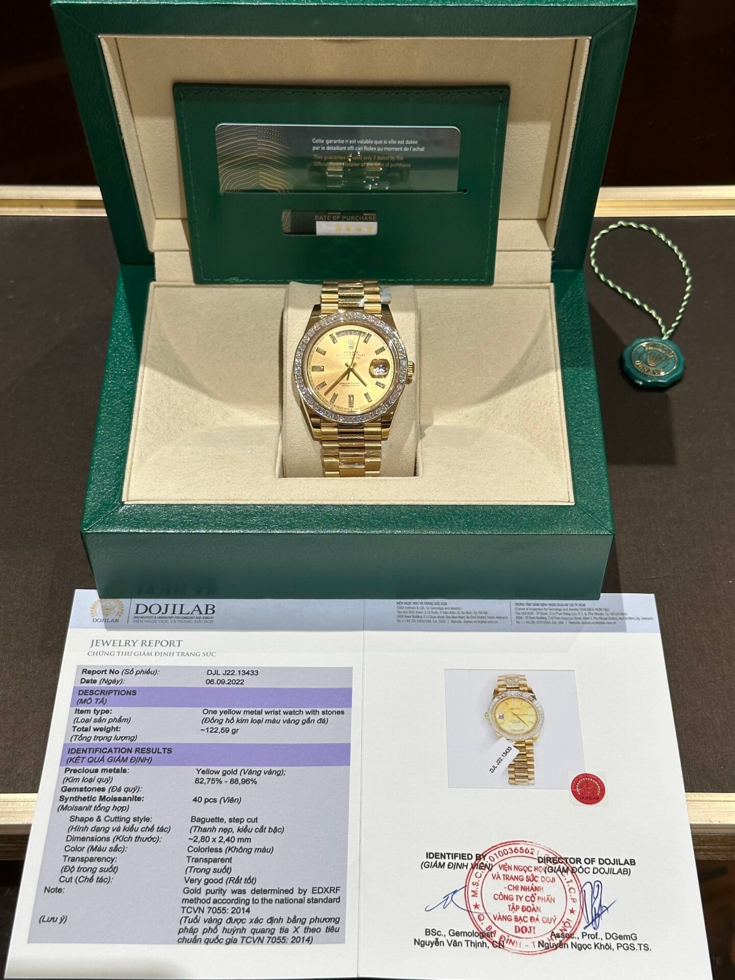 Rolex Day-Date Replica Watch Gold Wrapped Moissanite Baguette Diamond 40mm – Đồng Hồ Replica 1:1