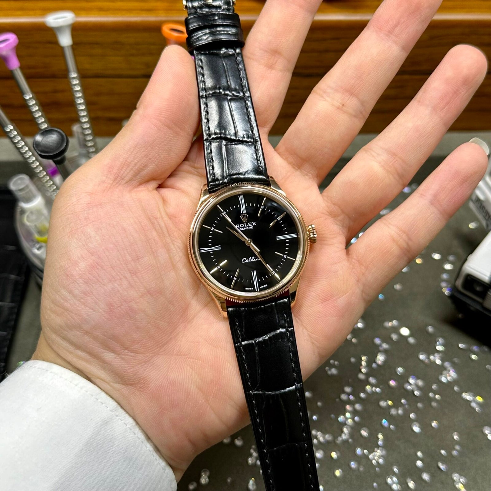 Rolex Replica Watch Cellini Time 50505 Black Dial Leather Strap 39mm – Đồng Hồ Replica 1:1