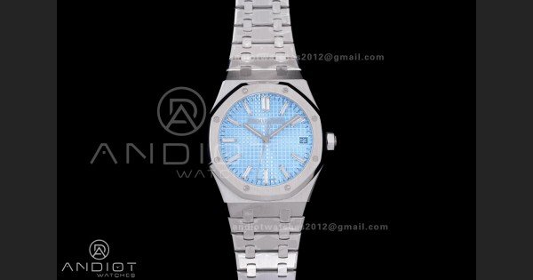 Royal Oak 41mm 15510BC SS ZF 1:1 Best Edition Ice Blue Crystal Dial on SS Bracelet SA4302 Super Clone