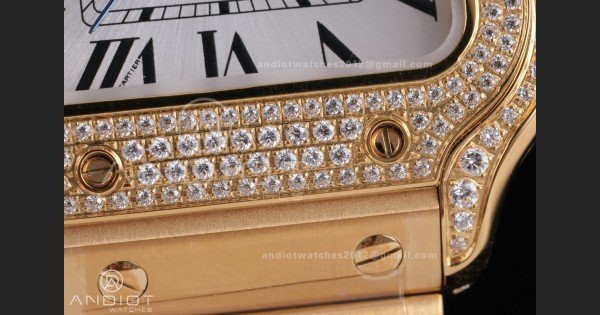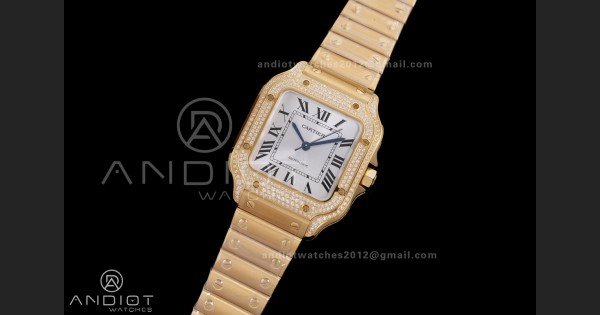 Write a review For Santos de Cartier 35mm BVF 1:1 Best Edition YG White Dial Diamond Bezel on YG Smart-Links Bracelet MIYOTA 9039