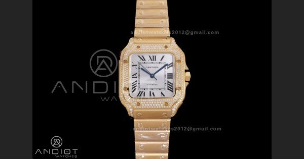 Reviews Over Santos de Cartier 35mm BVF 1:1 Best Edition YG White Dial Diamond Bezel on YG Smart-Links Bracelet MIYOTA 9039