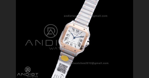 Write a review For Santos de Cartier 35mm SS/RG AF 1:1 Best Edition White Dial on SS SmartLinks Bracelet MIYOTA 9015