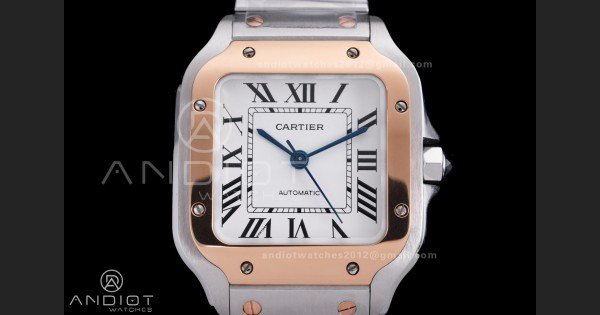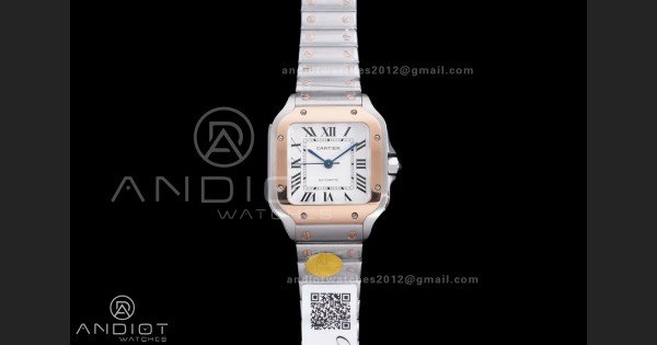 Santos de Cartier 35mm SS/RG AF 1:1 Best Edition White Dial on SS SmartLinks Bracelet MIYOTA 9015