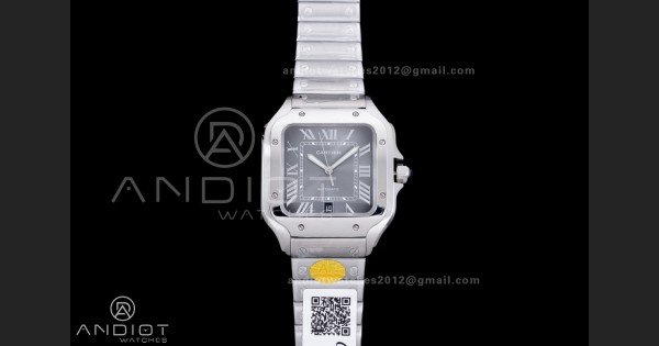 Reviews Over Santos de Cartier 40mm SS AF 1:1 Best Edition Grey Dial on SS SmartLinks Bracelet MIYOTA 9015