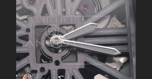 Reviews Over Santos de Cartier Skeleton PVD MLF Skeleton Dial on Black Leather Strap 9612MC Super Clone