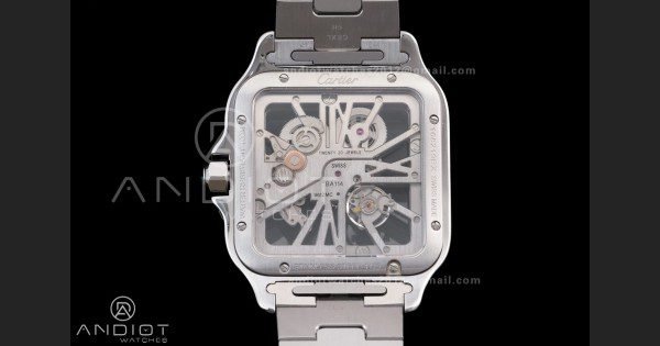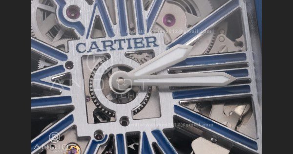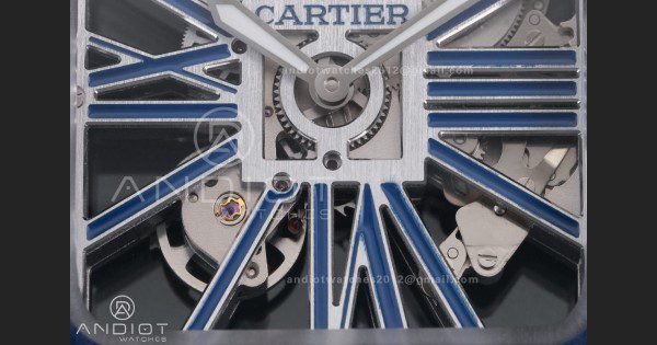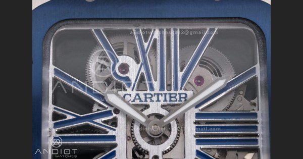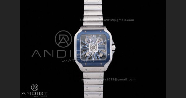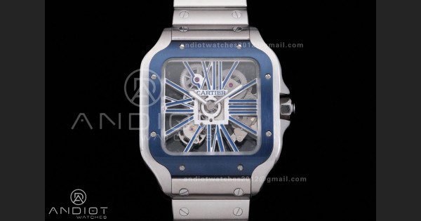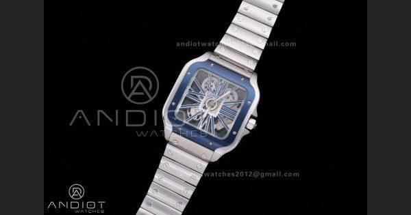 Write a review For Santos de Cartier Skeleton SS MLF Skeleton Blue Skeleton Dial Blue Bezel on SS SmartLink Bracelet 9611MC Super Clone