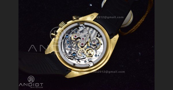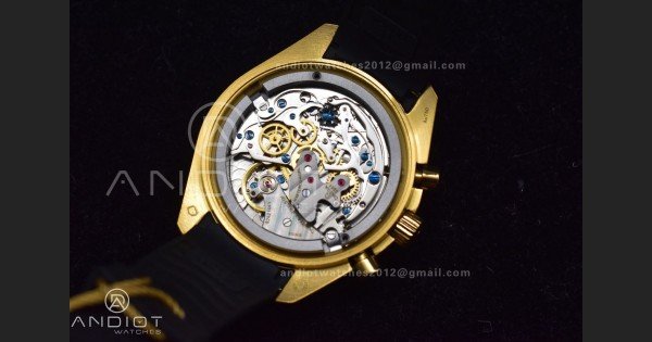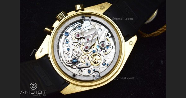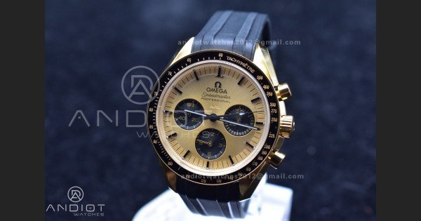 Reviews Over Speedmaster Moonwatch in Moonshine Gold YG RMF Best Edition YG Dial on Black Rubber Strap Manual Chrono