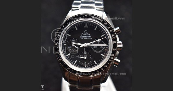 Speedmaster MoonWatch OMF SS Sapphire Crystal Black Dial on SS Bracelet Manual Winding Chrono Movement with Transparent Back