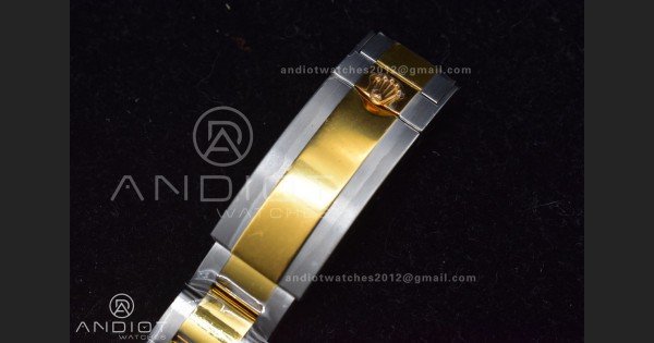 - Strap : 904L stainless steel bracelet with perfect SEL, clasp and divers extension and smooth screws, 18k yellow gold plated middle links