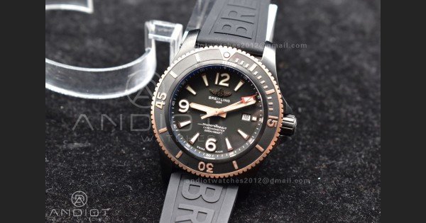 Superocean Automatic 44 TF 1:1 Best Edition Black Dial Black Bezel on Black Rubber Strap A2824