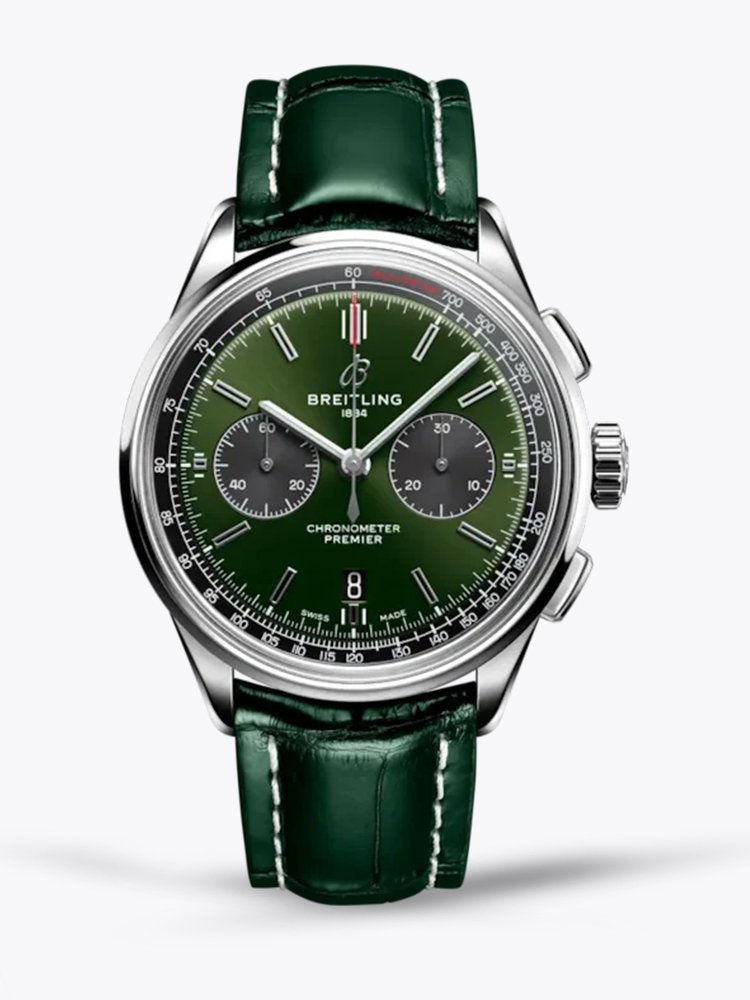 Swiss Breitling Premier AB0118221L1P2 Replica Watch – Elegant 42mm Green Sunburst Dial, Premium Leather Strap