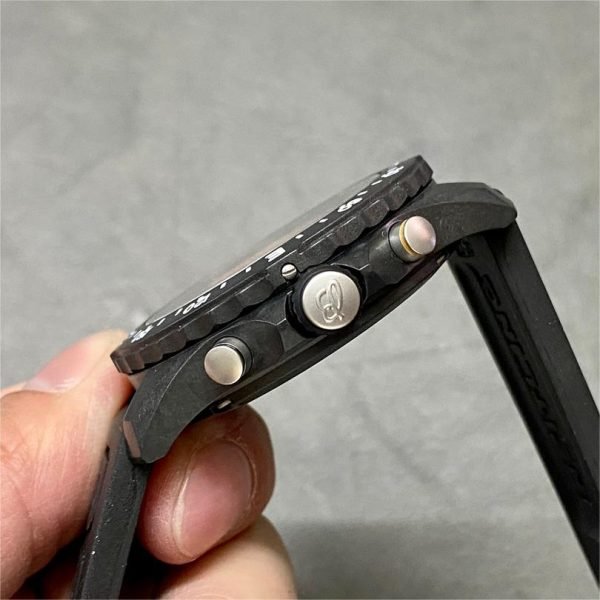 Fitted with a rugged black rubber strap, this replica watch combines sporty looks with daily functionality. It has a Swiss movement, providing accurate readings. It’s waterproof to 50 meters. So it’s prepared to deal with your day-to-day battles.