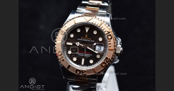 Reviews Over Yacht-Master 126621 Clean 1:1 Best Edition Rose Gold Plated 904L Steel Brown Dial On SS Bracelet VR3235